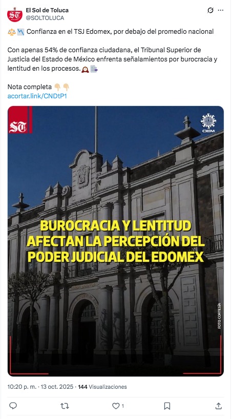 - https://oem.com.mx/elsoldetoluca/local/burocracia-y-lentitud-afectan-la-percepcion-del-poder-judicial-del-edomex-26269920