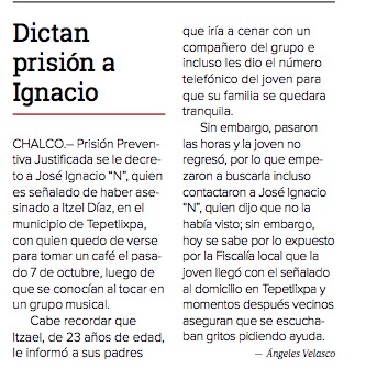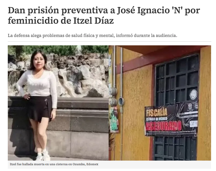 - https://oem.com.mx/la-prensa/policiaca/prision-preventiva-para-jose-ignacio-n-presunto-asesino-de-itzel-hallada-en-cisterna-26306871