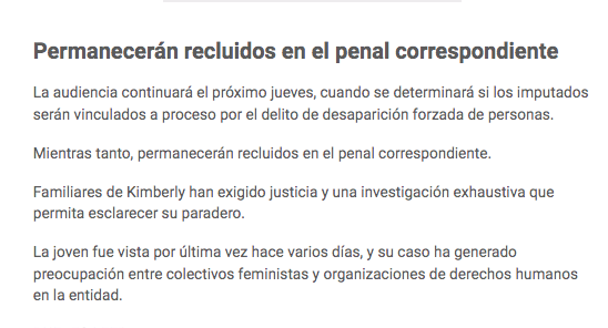 - https://primeroeditores.com.mx/informacion-general/dictaron-prision-preventiva-a-implicados-en-desaparicion-de-kimberly/