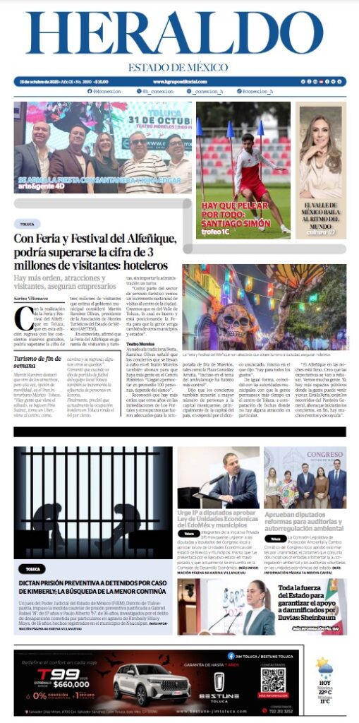 - https://www.facebook.com/eluniversaledomex/posts/pfbid023BTVa3sbXb74HtMfyDDTEUfCFn5dKgx2hW8JQtAUbTsJRSenUPAbVmDEPR9rkJy3l?cft[0]=AZVjyldnEDrSBTBG2hKkk1VWOugFgvFw0DJZqVn53523UOI68ycmZlrkMIgI_TOnbe0mKTvV-iOMlWCKgTrl17ziOd16KjOeVUNh80-nbR9DXZAdBKSjjrJQw0h-idZhH9Hqq7vgkPALPbh47Dn9an6IYiJmpEeuFqgd6hrvwQdDD8Xu4g9-UrP9ZPgrCvRUQm9jePJP9Nl71OOSqYoSNjdG&tn=%2CO%2CP-R