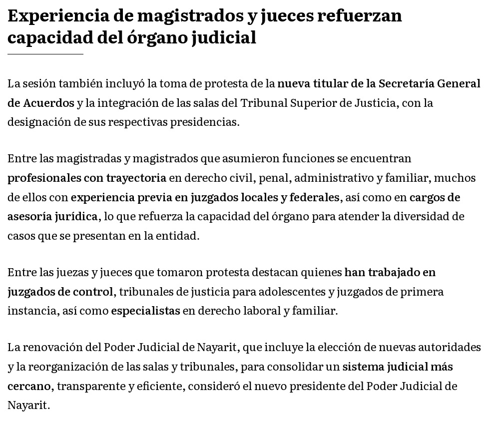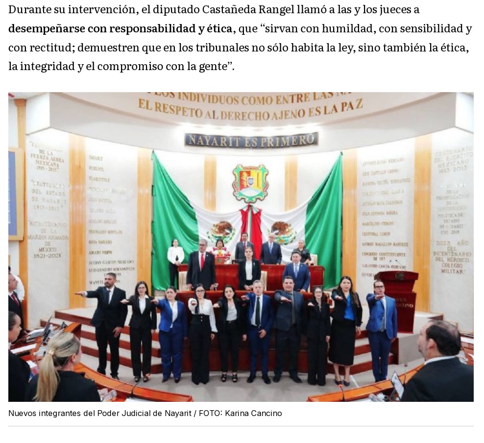 El Congreso del Estado, en sesión solemne, rindieron protesta las y los nuevos integrantes del Poder Judicial de Nayarit, para la renovación de magistraturas, juzgados y órganos administrativos tras el Proceso Electoral Extraordinario 2025.