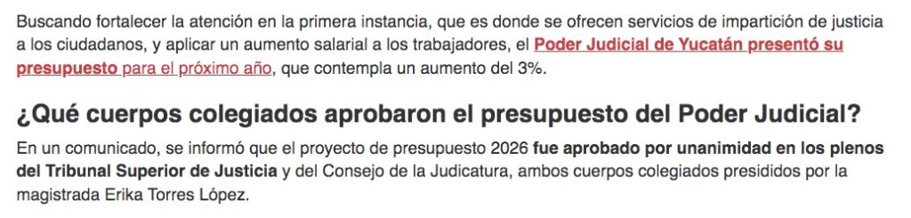 - https://www.posta.com.mx/yucatan/poder-judicial-de-yucatan-aumenta-su-presupuesto-para-el-proximo-ano/vl2111461