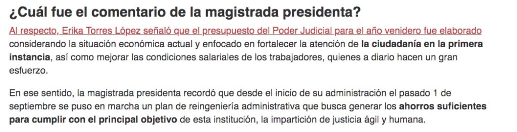 En un comunicado, se informó que el proyecto de presupuesto 2026 fue aprobado por unanimidad en los plenos del Tribunal Superior de Justicia y del Consejo de la Judicatura, ambos cuerpos colegiados presididos por la magistrada Erika Torres López.