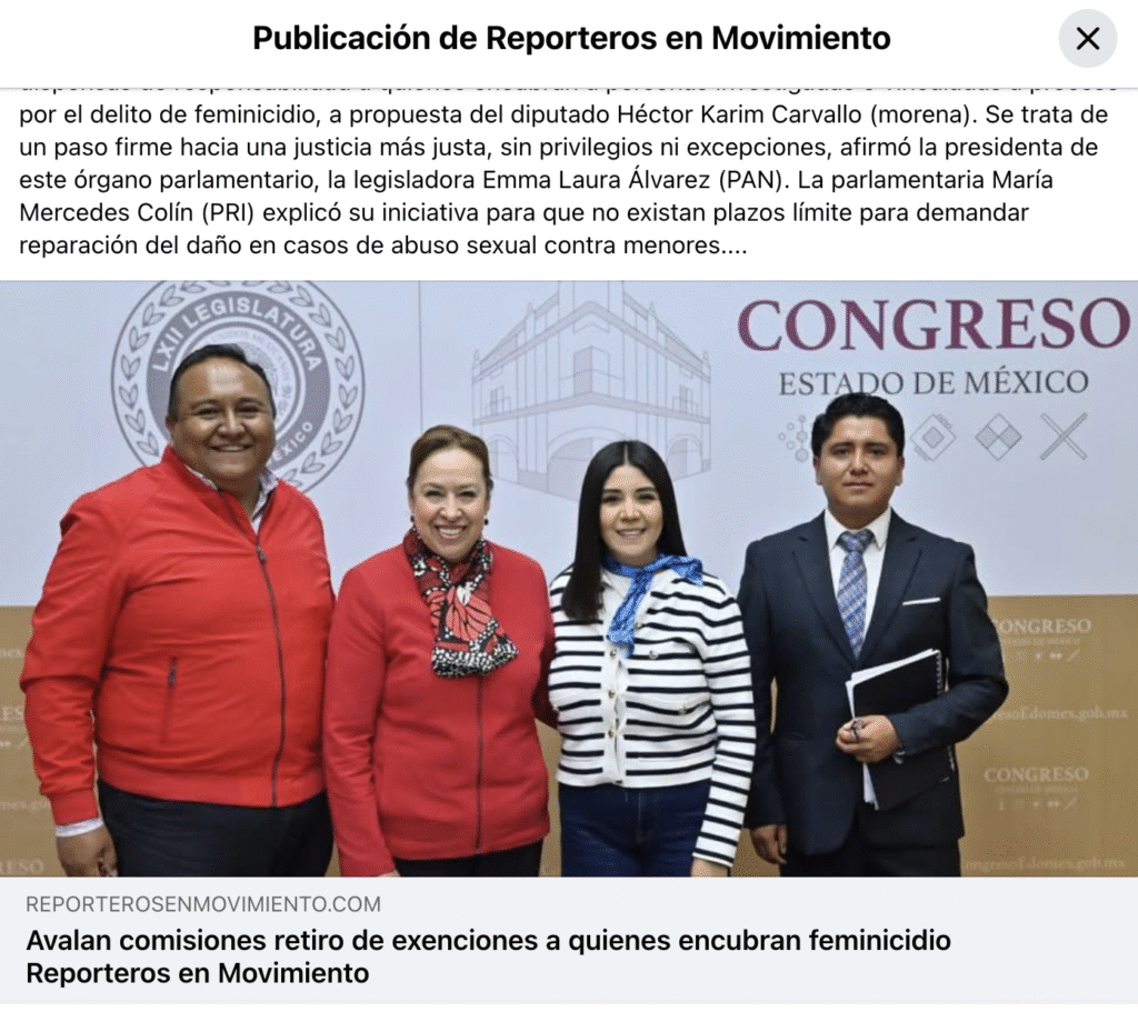 - https://reporterosenmovimiento.com/2025/10/17/avalan-comisiones-retiro-de-exenciones-a-quienes-encubran-feminicidio/?utm_source=facebook&utm_medium=jetpack_social