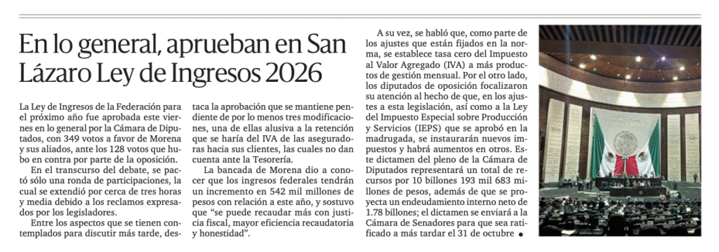 En lo general, aprueban en San Lázaro Ley de Ingresos 2026