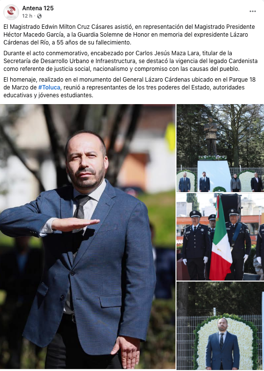 El Magistrado Edwin Milton Cruz asistió a la Guardia Solemne de Honor en memoria del expresidente Lázaro Cárdenas del Río