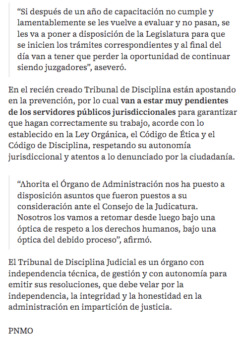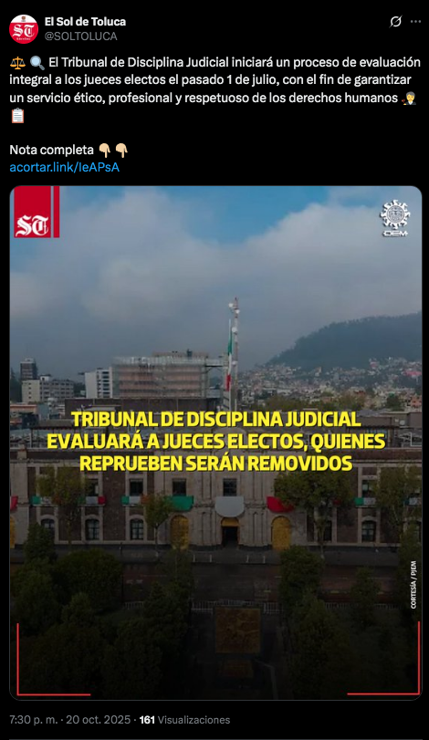 - https://oem.com.mx/elsoldetoluca/local/tribunal-de-disciplina-judicial-evaluara-a-jueces-electos-quienes-reprueben-seran-removidos-26385273