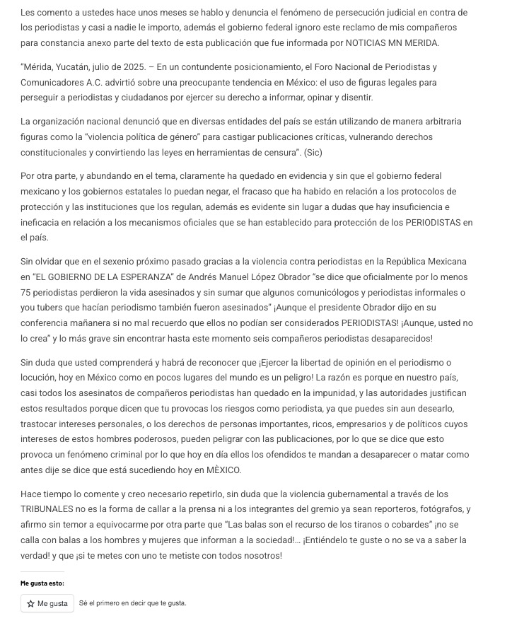 - https://reporterosenmovimiento.com/2025/10/21/se-esta-usando-al-poder-judicial-en-contra-de-periodistas/