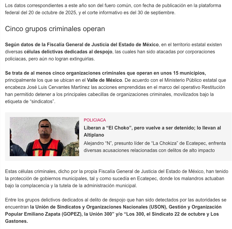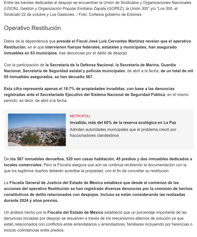 - https://oem.com.mx/la-prensa/metropoli/despojo-no-cede-en-edomex-y-muestra-aumento-del-52-26397260