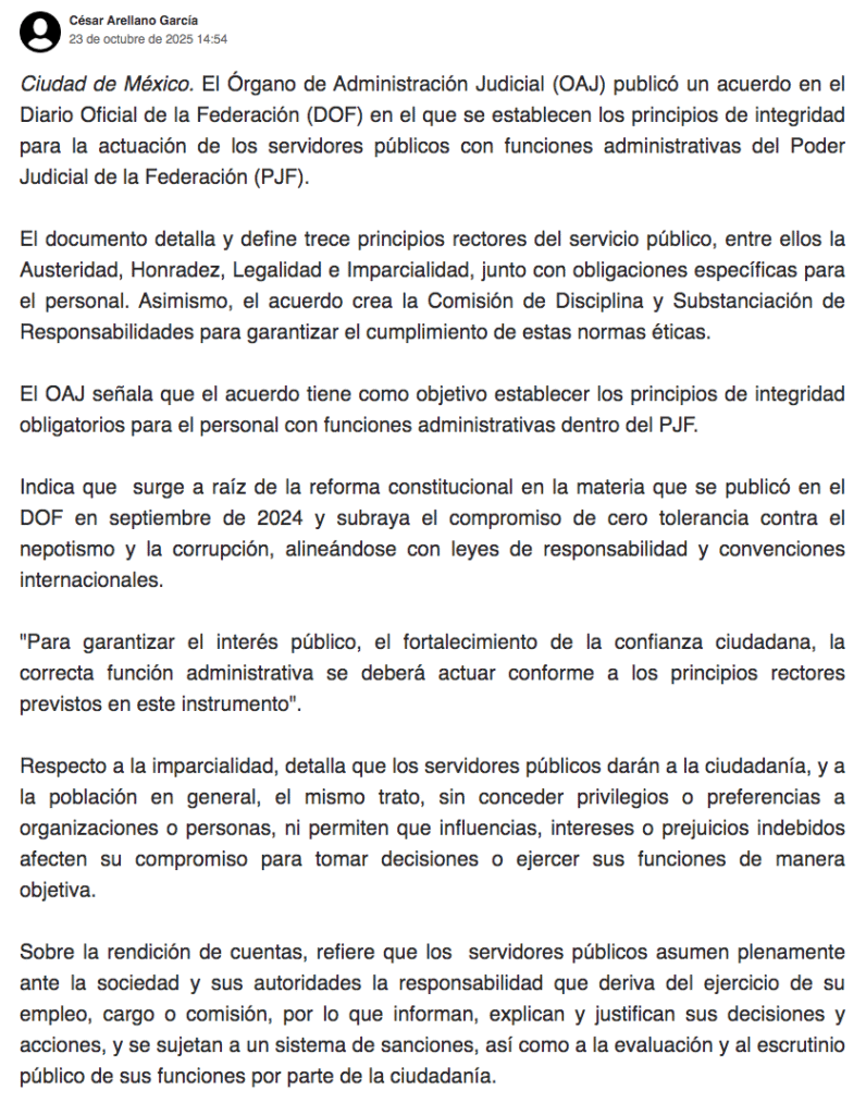 - https://www.jornada.com.mx/noticia/2025/10/23/politica/publican-lineamientos-de-integridad-para-funcionarios-del-poder-judicial