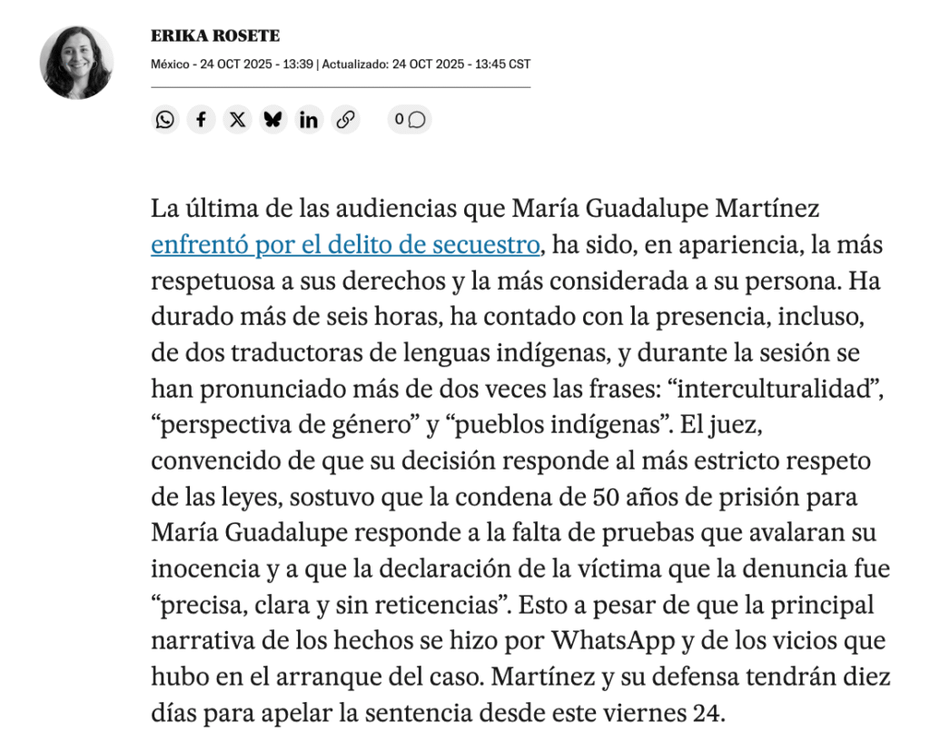 - https://elpais.com/mexico/2025-10-24/conversaciones-de-whatsapp-y-la-falta-de-una-defensa-apropiada-sustentan-la-sentencia-a-50-anos-de-prision-de-maria-guadalupe-martinez.html