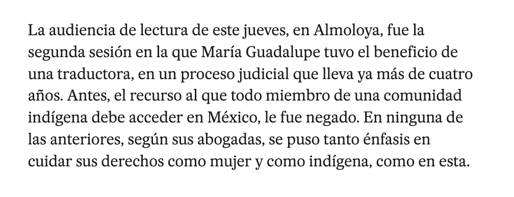 La última de las audiencias que María Guadalupe Martínez enfrentó por el delito de secuestro, ha sido, en apariencia, la más respetuosa a sus derechos y la más considerada a su persona. Ha durado más de seis horas, ha contado con la presencia, incluso, de dos traductoras de lenguas indígenas, y durante la sesión se han pronunciado más de dos veces las frases: “interculturalidad”, “perspectiva de género” y “pueblos indígenas”. El juez, convencido de que su decisión responde al más estricto respeto de las leyes, sostuvo que la condena de 50 años de prisión para María Guadalupe responde a la falta de pruebas que avalaran su inocencia y a que la declaración de la víctima que la denuncia fue “precisa, clara y sin reticencias”. Esto a pesar de que la principal narrativa de los hechos se hizo por WhatsApp y de los vicios que hubo en el arranque del caso. Martínez y su defensa tendrán diez días para apelar la sentencia desde este viernes 24.