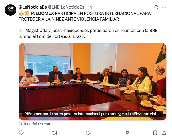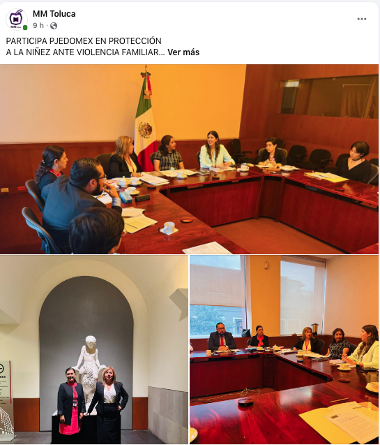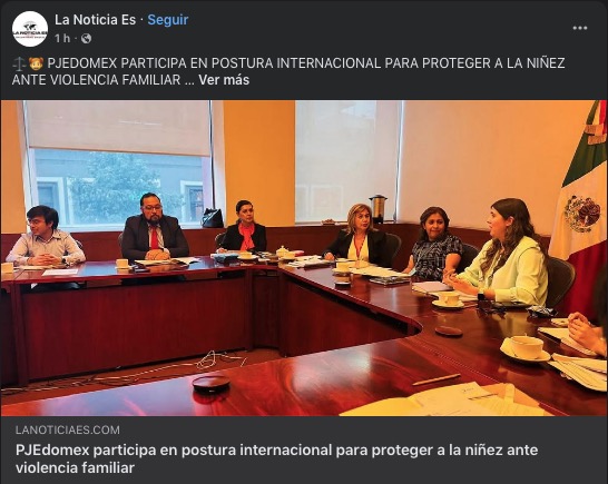 - https://www.lanoticiaes.com/post/pjedomex-participa-en-postura-internacional-para-proteger-a-la-ni%C3%B1ez-ante-violencia-familiar?fbclid=IwY2xjawNsV4VleHRuA2FlbQIxMQBicmlkETFDWjA5YkcxRDZ5bTZJS0Z6AR4_daXbyamRHikSueAyADWEnrXEEVS3KcfGA2pkaxyc8z7b4F4aenZkVlhh6Q_aem_pUOtCRhFbVU9bOB8YzqGcg
