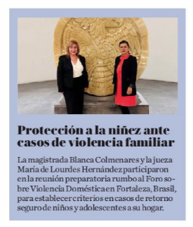 La Magistrada Blanca Colmenares Sánchez y la Jueza María de Lourdes Hernández Garduño, participaron en representación del Presidente del Tribunal Superior de Justicia del Estado de México, Magistrado Héctor Macedo García, en la reunión preparatoria rumbo al Foro sobre Violencia Doméstica en Fortaleza, Brasil, espacio en el que los países miembros establecerán criterios comunes en casos de restitución internacional de niñas, niños y adolescentes, particularmente cuando existe violencia en el entorno familiar.