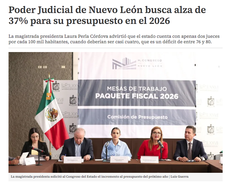 Al advertir que presentan un déficit importante en la cantidad de jueces, el Poder Judicial de Nuevo León busca un incremento del 37 por ciento en su presupuesto para el 2026.