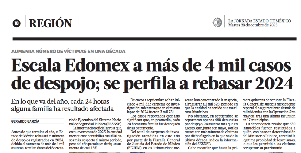 - https://lajornadaestadodemexico.com/edomex-escalo-a-mas-de-cuatro-mil-casos-de-despojo-y-se-perfila-a-rebasar-2024/