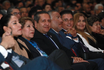 Acompañado de la Gobernadora Delfina Gómez Álvarez, del Secretario General de Gobierno Horacio Duarte Olivares, de la Presidenta de la Mesa Directiva Martha Azucena Camacho Reynoso y del Diputado José Francisco Vázquez Rodríguez, reconocí el trabajo que impulsa el desarrollo y bienestar del Estado de México. Enseguida se refirió a la importancia de construir una democracia sólida: