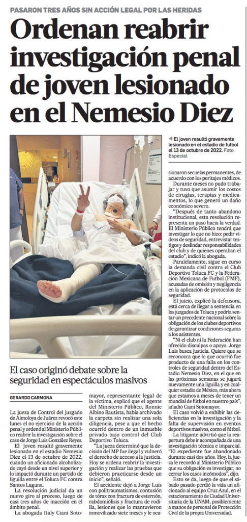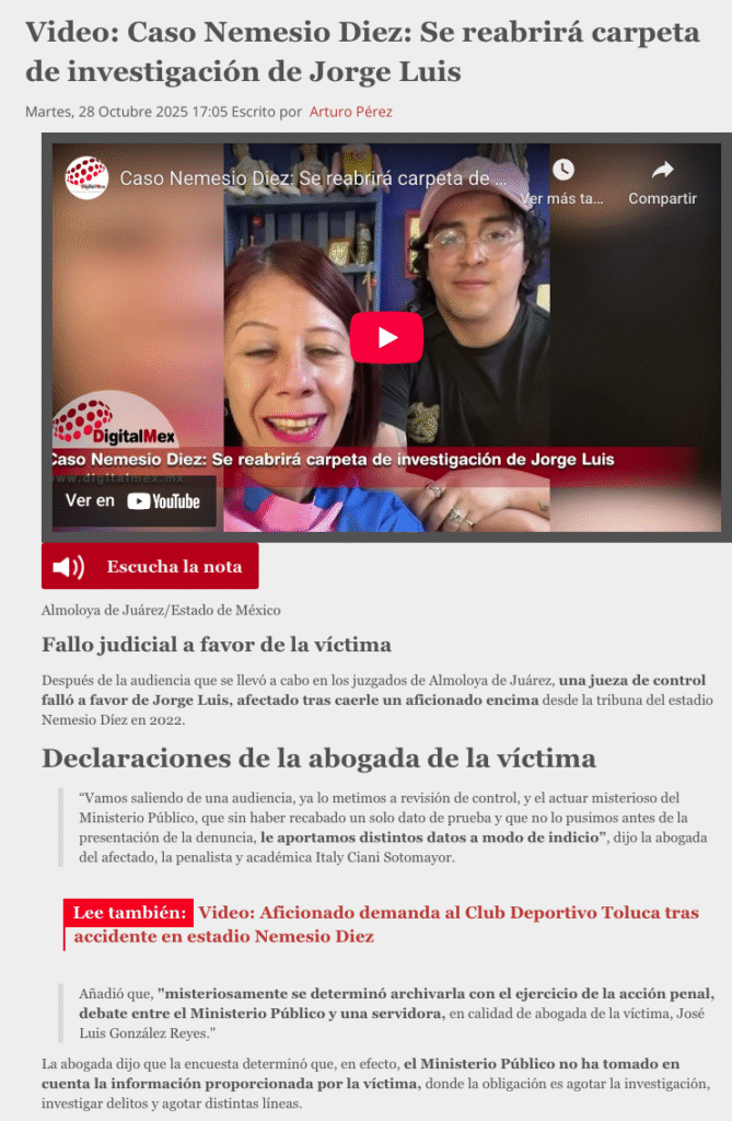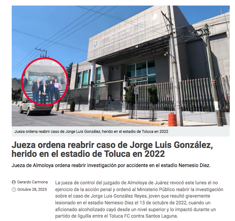 - https://lajornadaestadodemexico.com/jueza-ordena-reabrir-caso-de-jorge-luis-gonzalez-herido-en-el-estadio-de-toluca-en-2022/