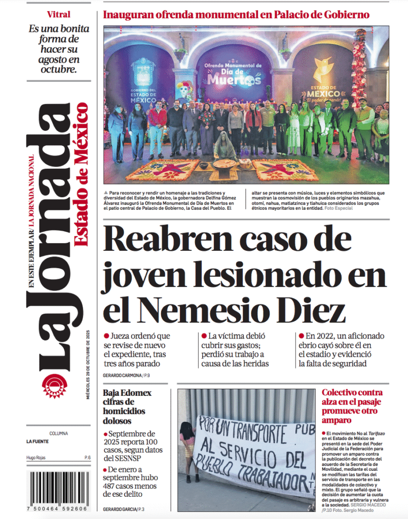 - https://www.facebook.com/LaJornadaEdoMEx/posts/pfbid0DBGDd2fvpxuQjYnvWpXuLG3c5XVRmqSxj8iMFzt1oiVUQCHYzjno1VERYSFq5kCYl