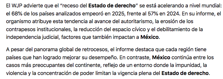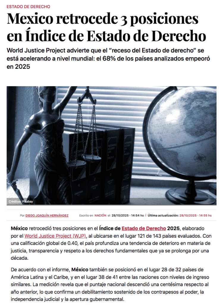- https://lasillarota.com/nacion/2025/10/28/mexico-retrocede-posiciones-en-indice-de-estado-de-derecho-565111.html