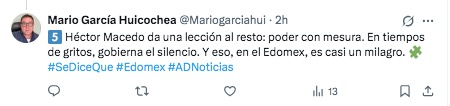 En el Poder Judicial del Estado de México, Héctor Macedo logró lo que parecía imposible: darle plena funcionalidad a una institución reformada y, hasta hace poco, atrapada en la incertidumbre. Lo ha hecho negociando, construyendo consenso y evitando el ruido, con una serenidad que desconcierta en un entorno adicto al dramatismo. En pocos meses consiguió que el engranaje judicial continuara moviéndose sin sobresaltos, cuidando los equilibrios sin someterse a ninguno. No es héroe ni mártir, solo un profesional que entiende que el poder también se ejerce con silencio, método y oficio. En tiempos donde todos gritan por atención, Macedo eligió la mesura, y eso —en el Edomex— ya es casi una revolución.