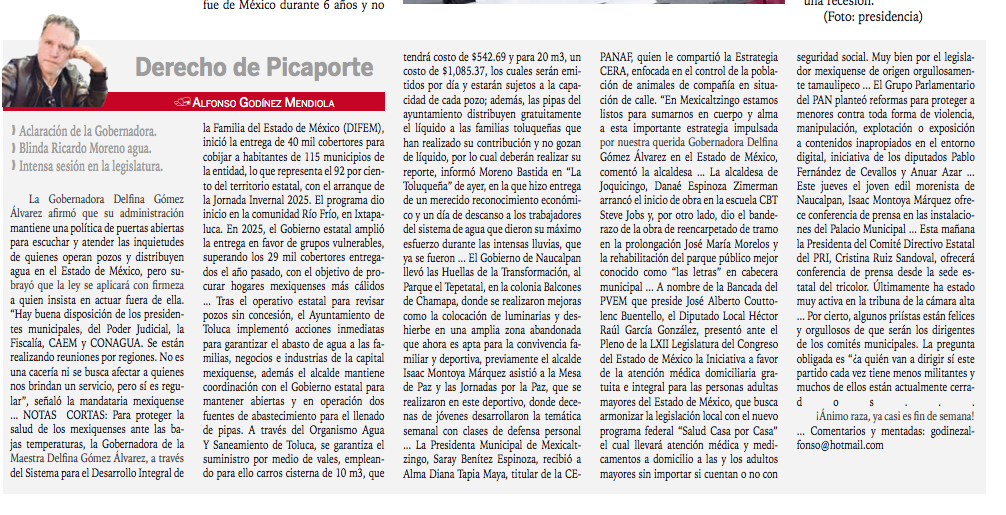 La Gobernadora Delfina Gómez Álvarez afirmó que su administración mantiene una política de puertas abiertas para escuchar y atender las inquietudes de quienes operan pozos y distribuyen agua en el Estado de México, pero subrayó que la ley se aplicará con firmeza a quien insista en actuar fuera de ella. “Hay buena disposición de los presidentes municipales, del Poder Judicial, la Fiscalía, CAEM y CONAGUA. Se están realizando reuniones por regiones. No es una cacería ni se busca afectar a quienes nos brindan un servicio, pero sí es regular”, señaló la mandataria mexiquense …