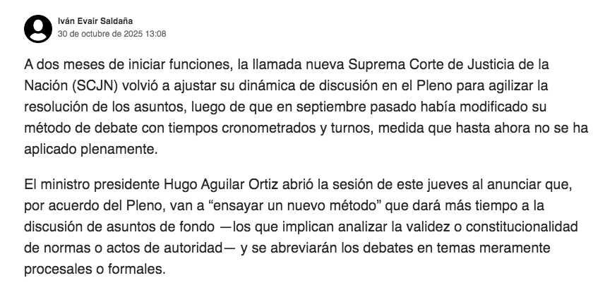• https://www.jornada.com.mx/noticia/2025/10/30/politica/nueva-corte-vuelve-a-ajustar-dinamica-para-agilizar-discusion-de-asuntos