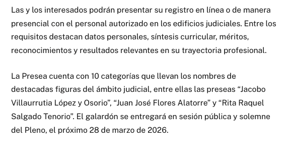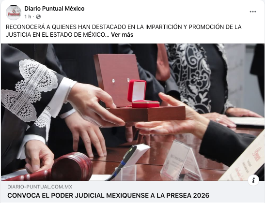 - https://www.lanoticiaes.com/post/participa-en-la-presea-poder-judicial-del-estado-de-m%C3%A9xico-2026?fbclid=IwY2xjawN23LJleHRuA2FlbQIxMQBicmlkETFYQ1J0ank3Zm5uRXNFVlAwAR6UrrBWHf_3r3WhdfPOU9j8ae3Be4D1us_o-DEyBRI_eVZoa-TmY_vkAeJgDA_aem_TBZ9n0V5y1ks4wDVpjdcAg
