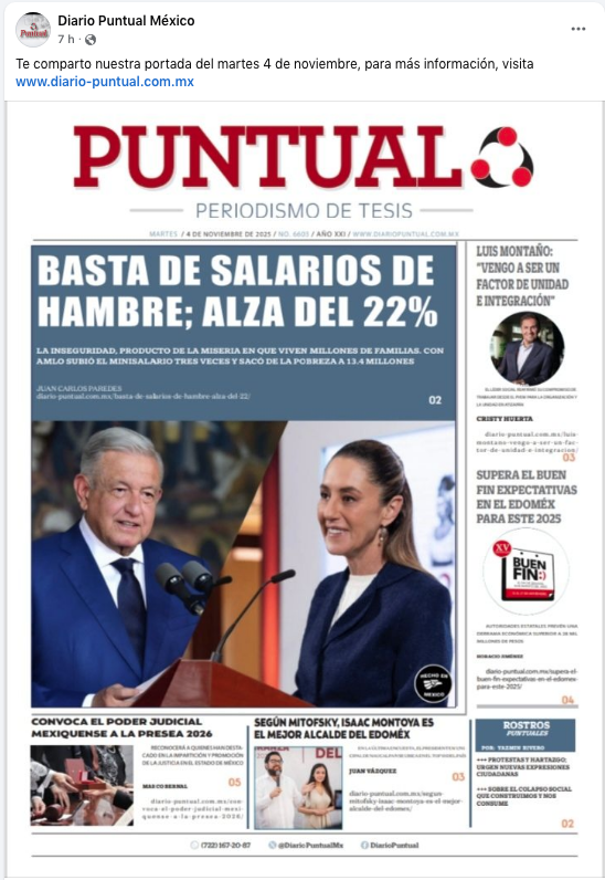 - https://www.facebook.com/DiarioPuntualMx/posts/pfbid064zs1qfWxA9oyGUAuyKWGkRecLr1CDCVfHdunLyTErxHuH2S5ELsWZ385aCxuQk3l