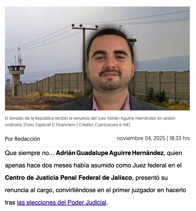 - https://www.elfinanciero.com.mx/nacional/2025/11/04/quien-es-adrian-aguirre-hernandez-el-primer-juez-de-la-eleccion-judicial-que-renuncio-a-los-dos-meses/
