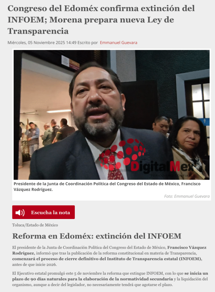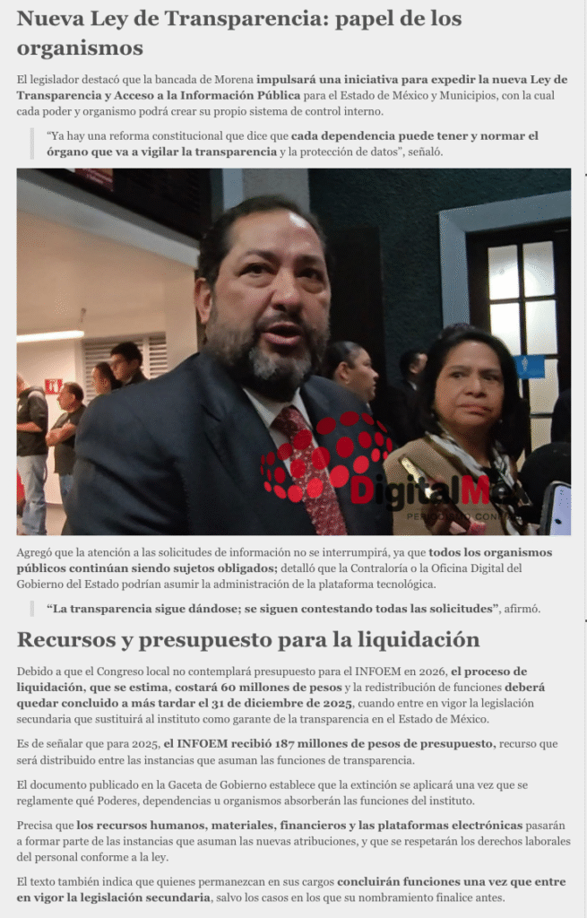 - https://digitalmex.mx/politica/story/62681/congreso-edomex-confirma-extincion-infoem-morena-prepara-nueva-ley-transparencia