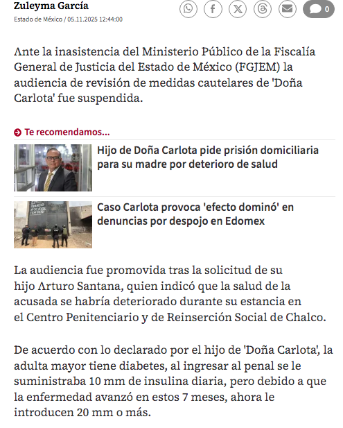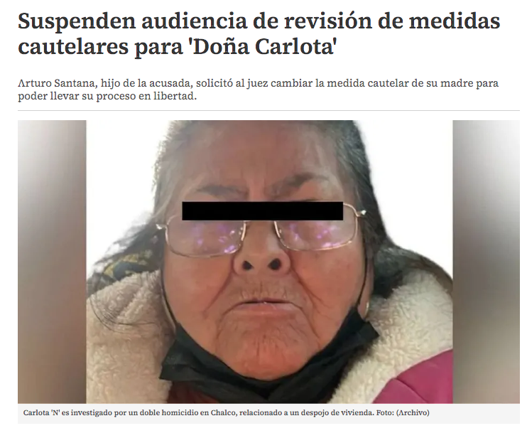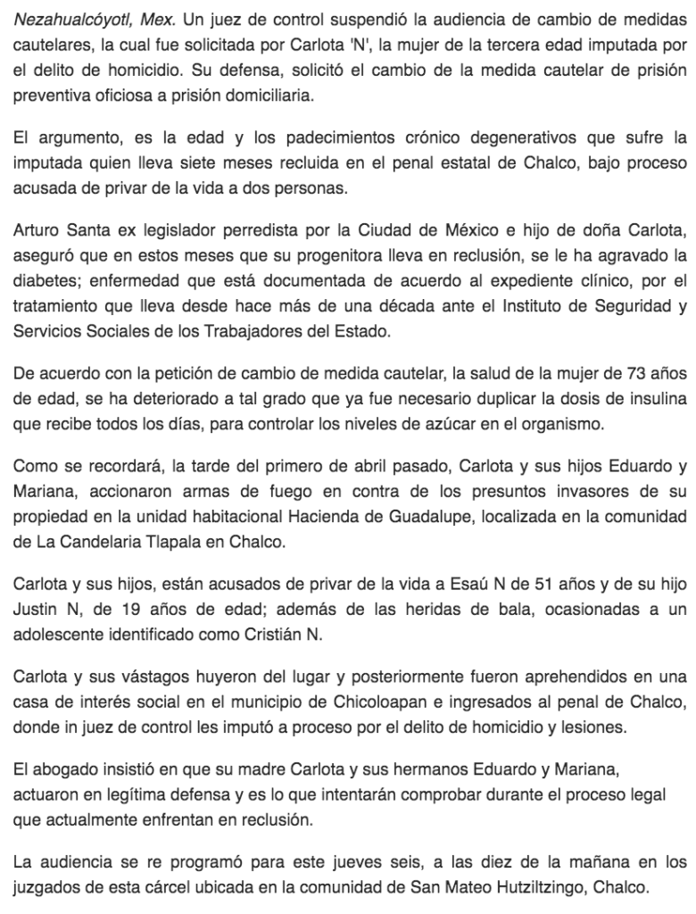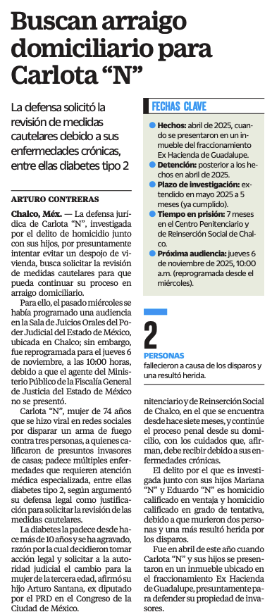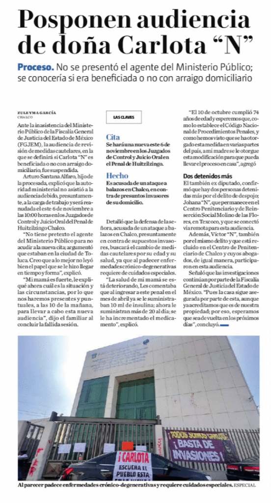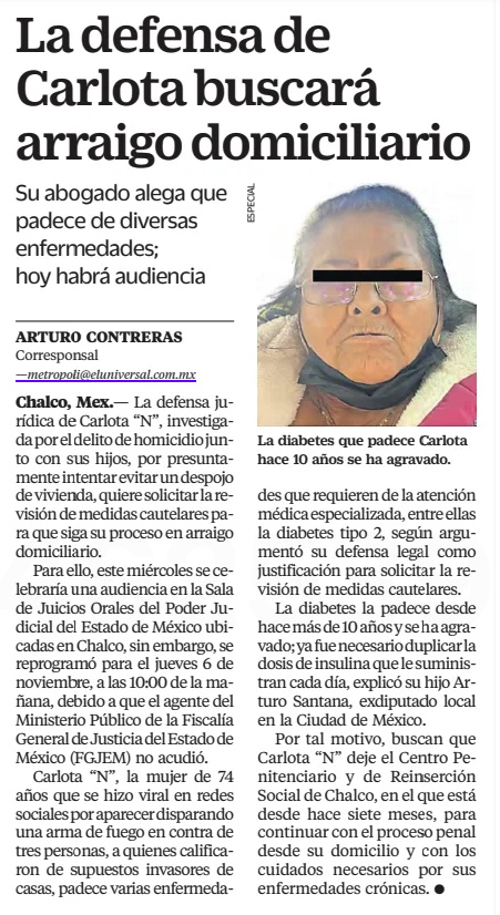 - https://www.jornada.com.mx/noticia/2025/11/05/estados/aplazan-decision-de-prision-domiciliaria-de-carlota-adulta-mayor-acusada-de-homicidio