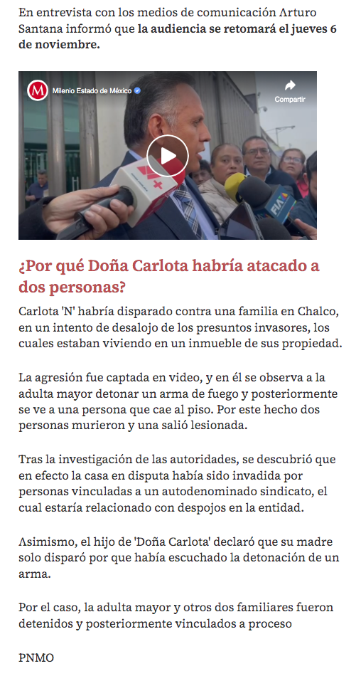 - https://lajornadaestadodemexico.com/audiencia-de-dona-carlota-n-la-abuelita-de-chalco-es-pospuesta/