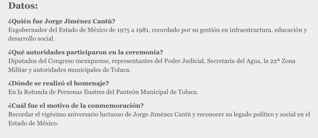 • https://poderedomex.com/rinden-congresistas-mexiquenses-homenaje-a-jorge-jimenez-cantu/?fbclid=IwY2xjawOAMdhleHRuA2FlbQIxMABicmlkETFRekpKcVBEN2RvRDIxdzMyc3J0YwZhcHBfaWQQMjIyMDM5MTc4ODIwMDg5MgABHjWc3Ji5ZnVk9gnKg7BYtwy7DDyNBB9Rl-7Ddy64ZFZOs5vc-22usVyVT84y_aem_RmZHtrDA0xgC3B_hlsJ2iw