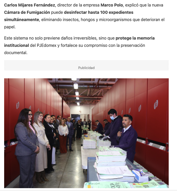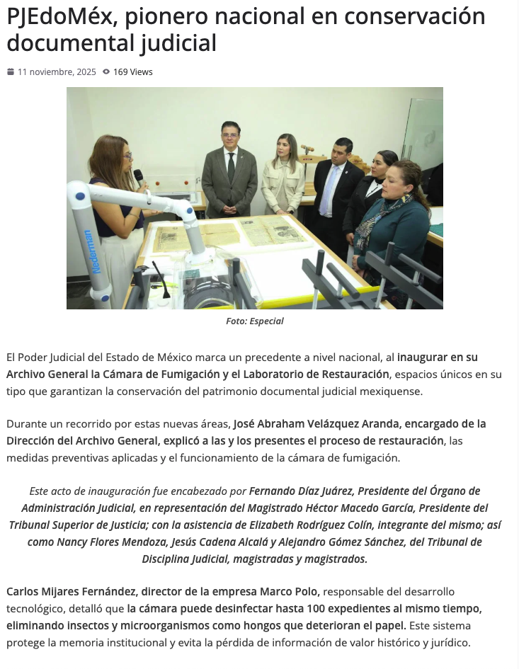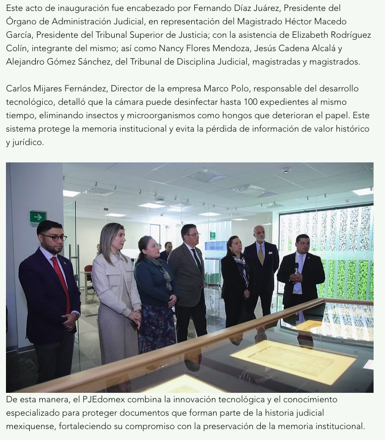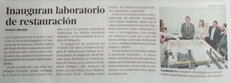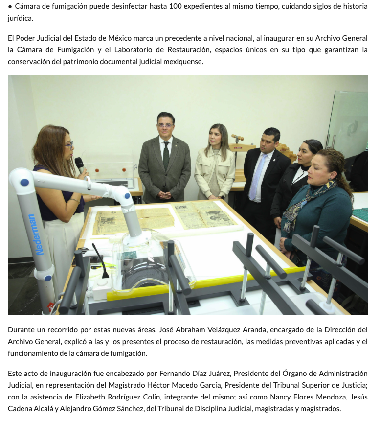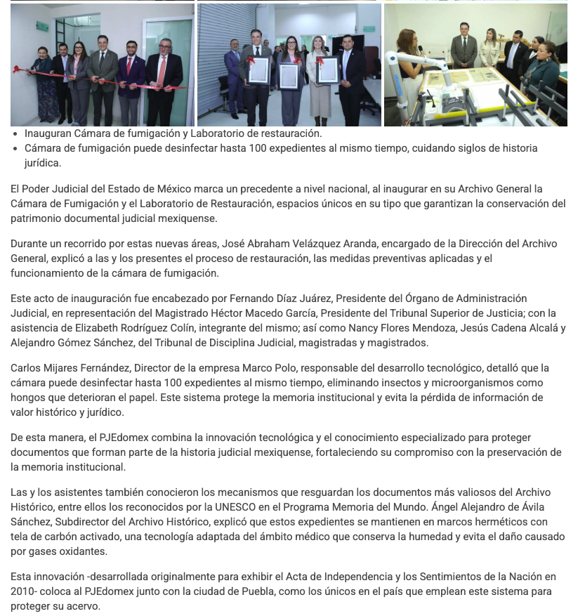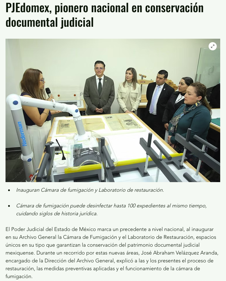 - https://informativomexiquense.com/edomex/pjedomex-inaugura-camara-de-fumigacion-y-laboratorio-unico-para-proteger-documentos-historicos