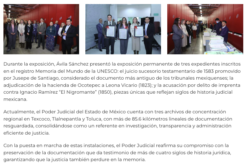 - https://www.lanoticiaes.com/post/pjedomex-pionero-nacional-en-conservaci%C3%B3n-documental-judicial