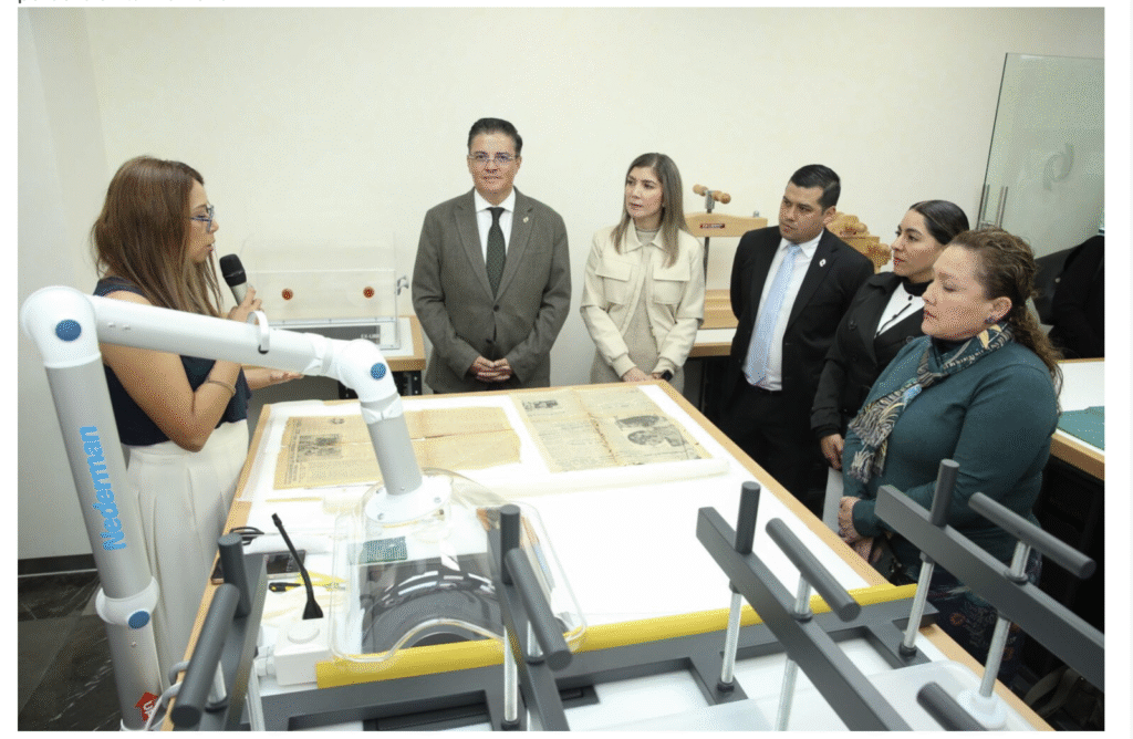 Durante un recorrido por estas nuevas áreas, José Abraham Velázquez Aranda, encargado de la Dirección del Archivo General, explicó a las y los presentes el proceso de restauración, las medidas preventivas aplicadas y el funcionamiento de la cámara de fumigación.