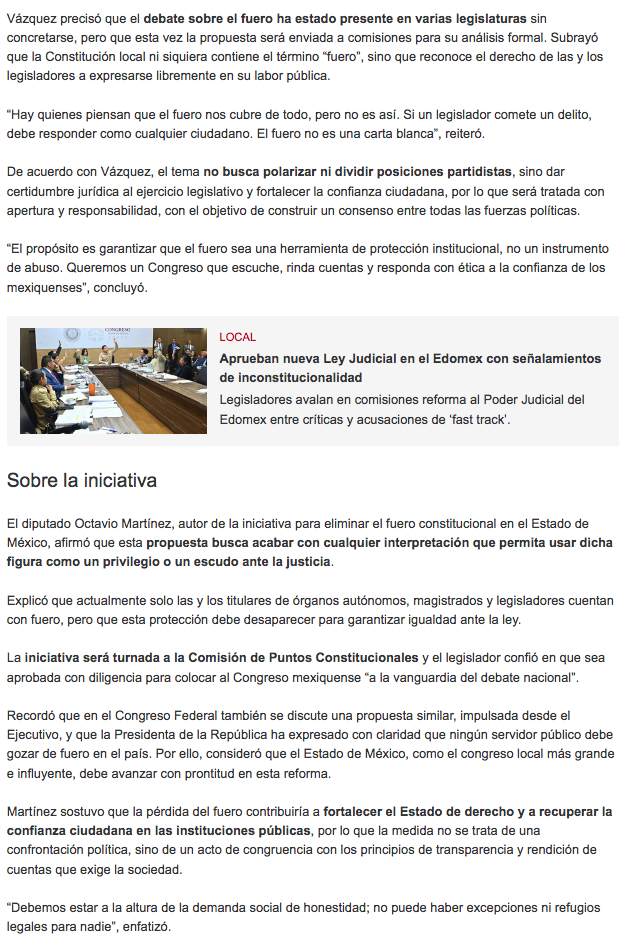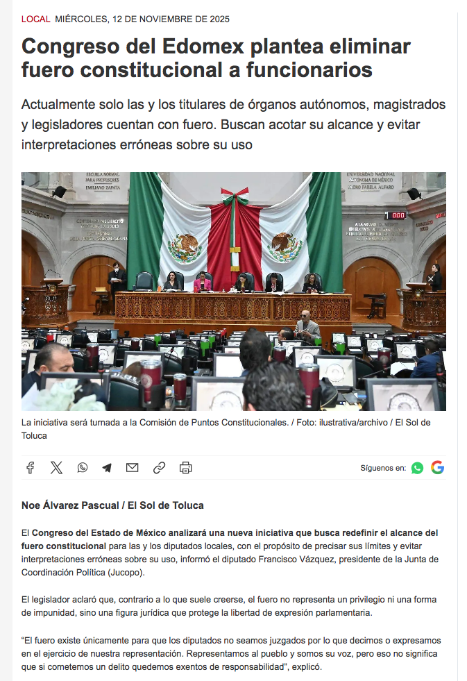• https://oem.com.mx/elsoldetoluca/local/congreso-del-edomex-plantea-eliminar-fuero-constitucional-a-funcionarios-26763146