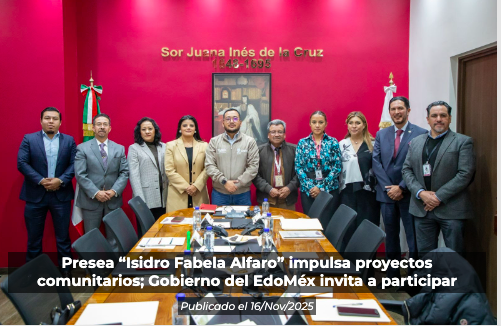 Presea “Isidro Fabela Alfaro” impulsa proyectos comunitarios; Gobierno del Edomex invita a participar