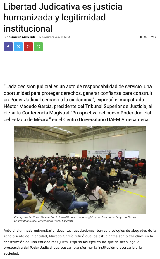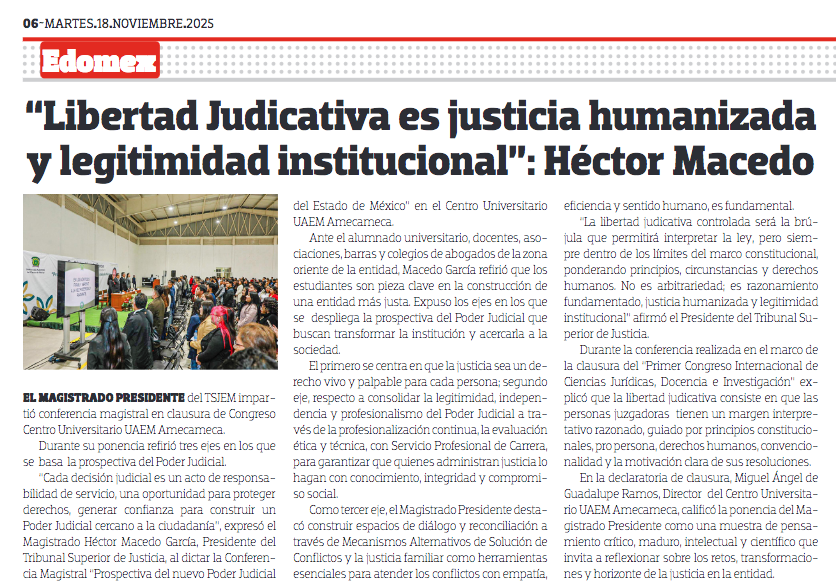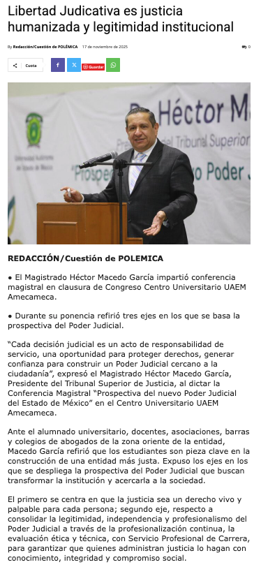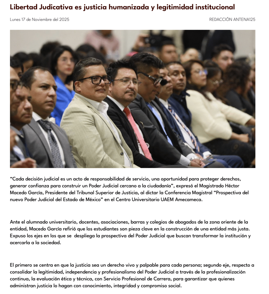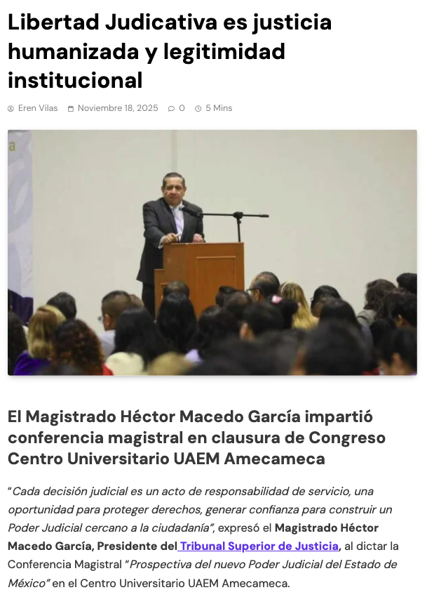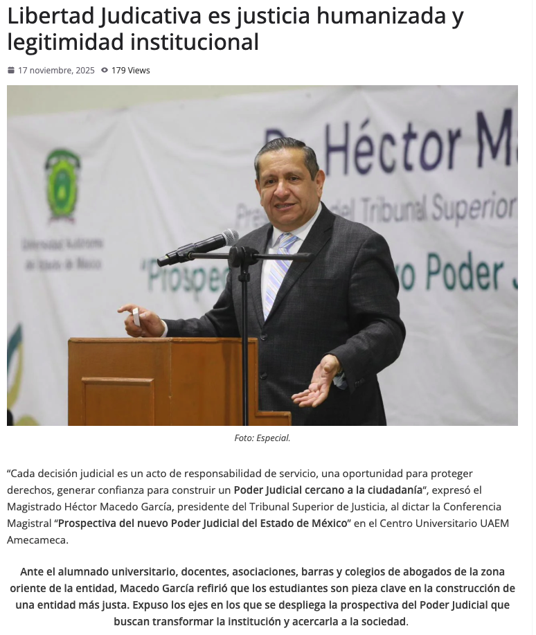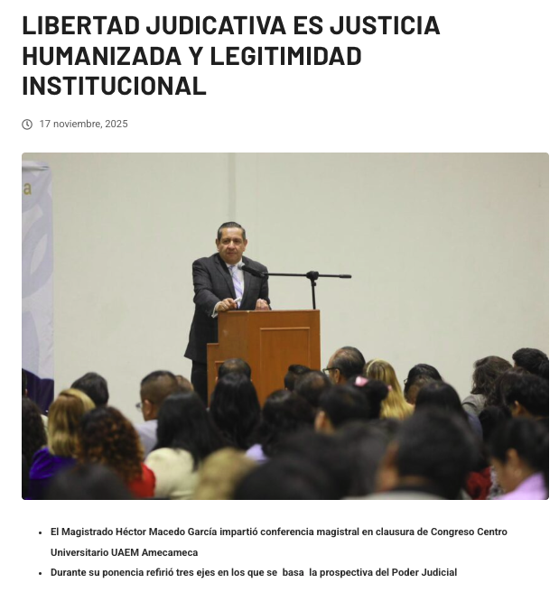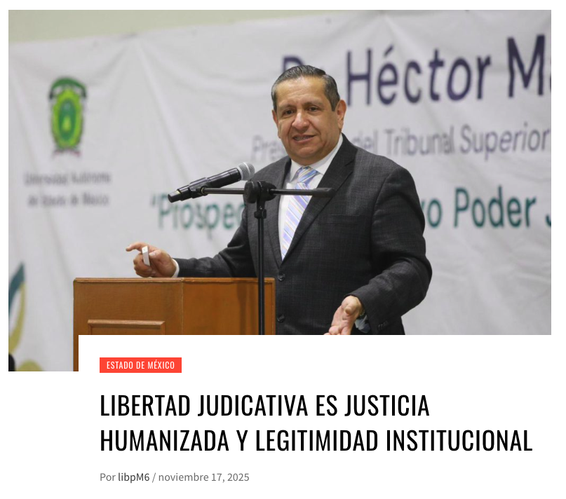 • https://agendainformativa.com.mx/2025/17/11/pjedomex-libertad-judicativa-es-justicia-humanizada-y-legitimidad-institucional/