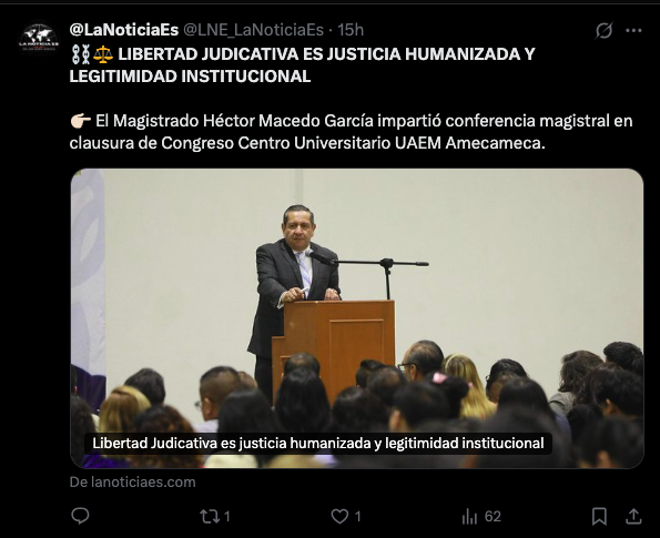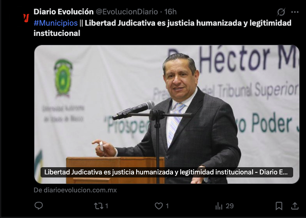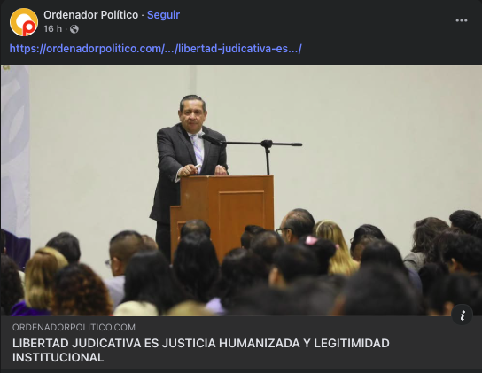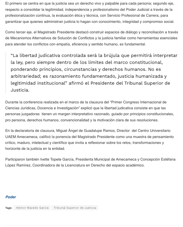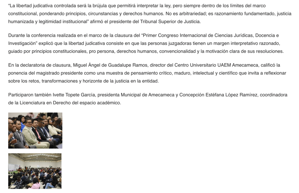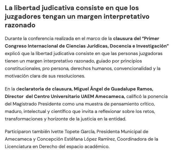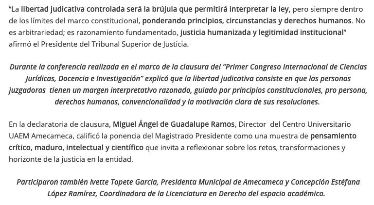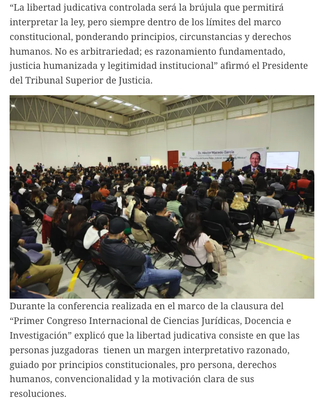 • https://www.diarioevolucion.com.mx/libertad-judicativa-es-justicia-humanizada-y-legitimidad-institucional/?fbclid=IwY2xjawOJYIZleHRuA2FlbQIxMQBicmlkETFBeGptVVVUYXU4a2xDTFJPc3J0YwZhcHBfaWQQMjIyMDM5MTc4ODIwMDg5MgABHlEhcnsuuIPQv6QsOm8siwoS3UvVgqVRdjR2OSaI6lPREaggCNFO2c89Oqyz_aem_Du0PecDrfZXGTb3HND1GyA