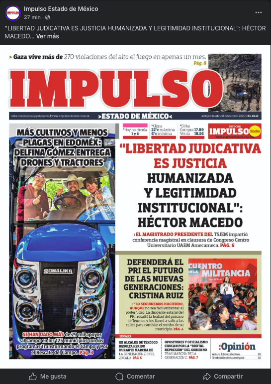 • https://www.facebook.com/ImpulsoEstadodeMexico/posts/pfbid02wEGBe6u8WFvj2GM3zSx9CF81rWDnp5oXMSqK34L2KivDYKnbJxqrWSTbseGcokptl