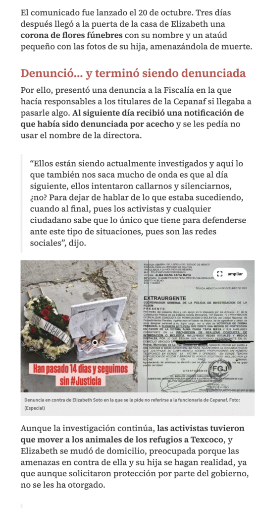 Fundadora de Seres Libres, santuario de rescate animal, acusó desaparición de perros en Edomex… y terminó con amenazas y una denuncia