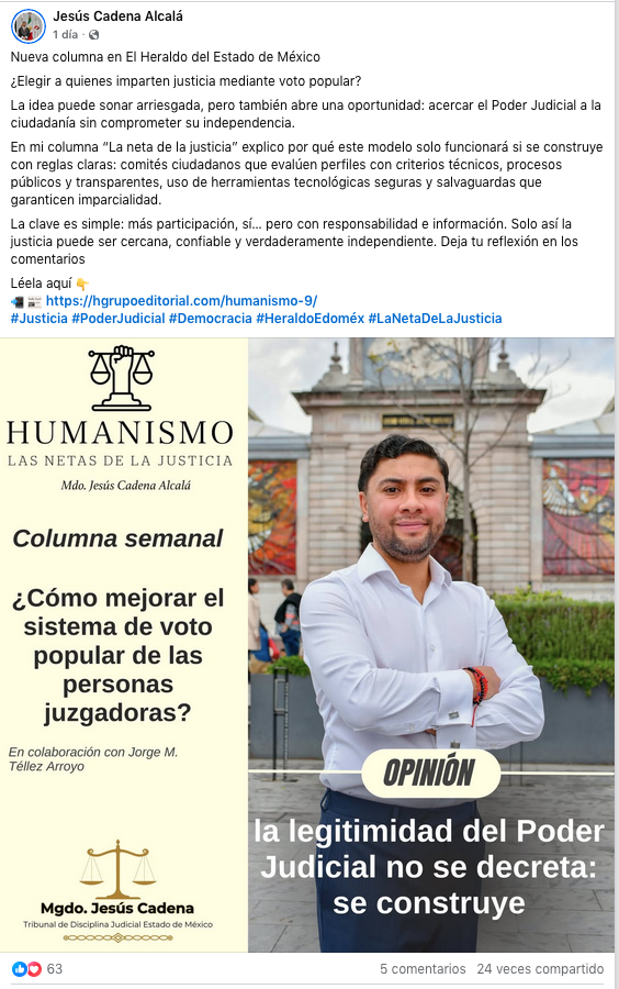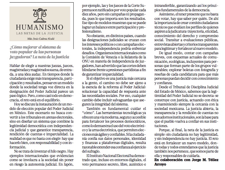 ¿Cómo mejorar el sistema de voto popular de las personas juzgadoras? La neta de la justicia – Mdo. Jesús Cadena Alcalá