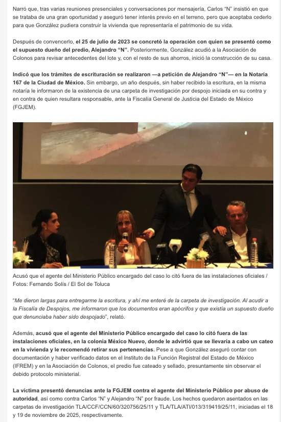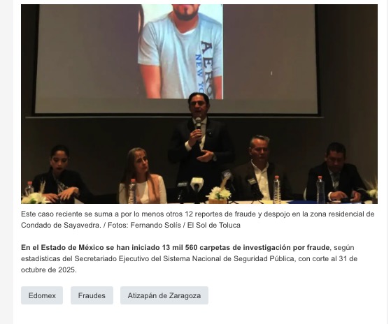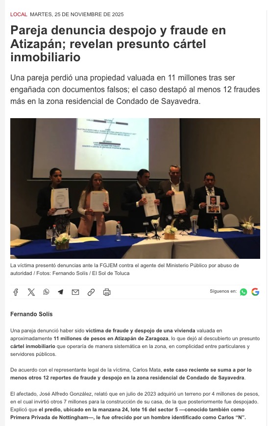 - https://oem.com.mx/elsoldetoluca/local/pareja-denuncia-despojo-y-fraude-en-atizapan-revelan-presunto-cartel-inmobiliario-26968453