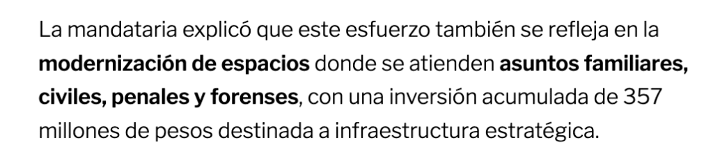 En los últimos cuatro años, el presupuesto destinado al Sistema de Justicia aumentó 51 por ciento, lo que permitió ampliar la capacidad operativa del Poder Judicial, al pasar de 94 a 159 juzgados, lo que representa 65 nuevos órganos jurisdiccionales que fortalecen la cobertura y reducen tiempos de resolución.