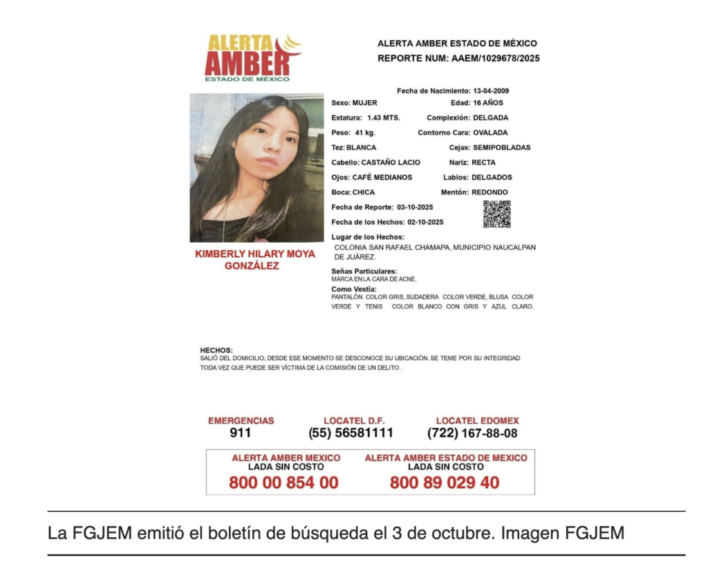 Kimberly Moya González, estudiante del Colegio de Ciencias y Humanidades (CCH) Naucalpan cumplió dos meses sin regresar a casa, luego de que desapareció el 2 de octubre en este municipio, donde familiares y amigos claman por su localización.