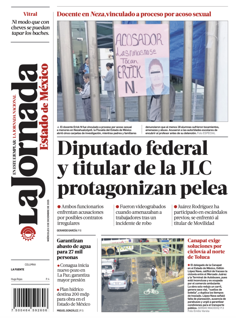 - https://www.facebook.com/LaJornadaEdoMEx/posts/pfbid0Av1fWEuTYukTJab1HcLuagKNg4SWyJhQNfHMYtCUEPTExRMuGyQTZmx4bP2d3MPXl
