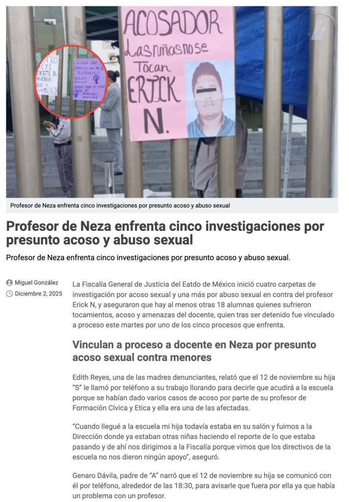 - https://lajornadaestadodemexico.com/profesor-de-neza-enfrenta-cinco-investigaciones-por-presunto-acoso-y-abuso-sexual/