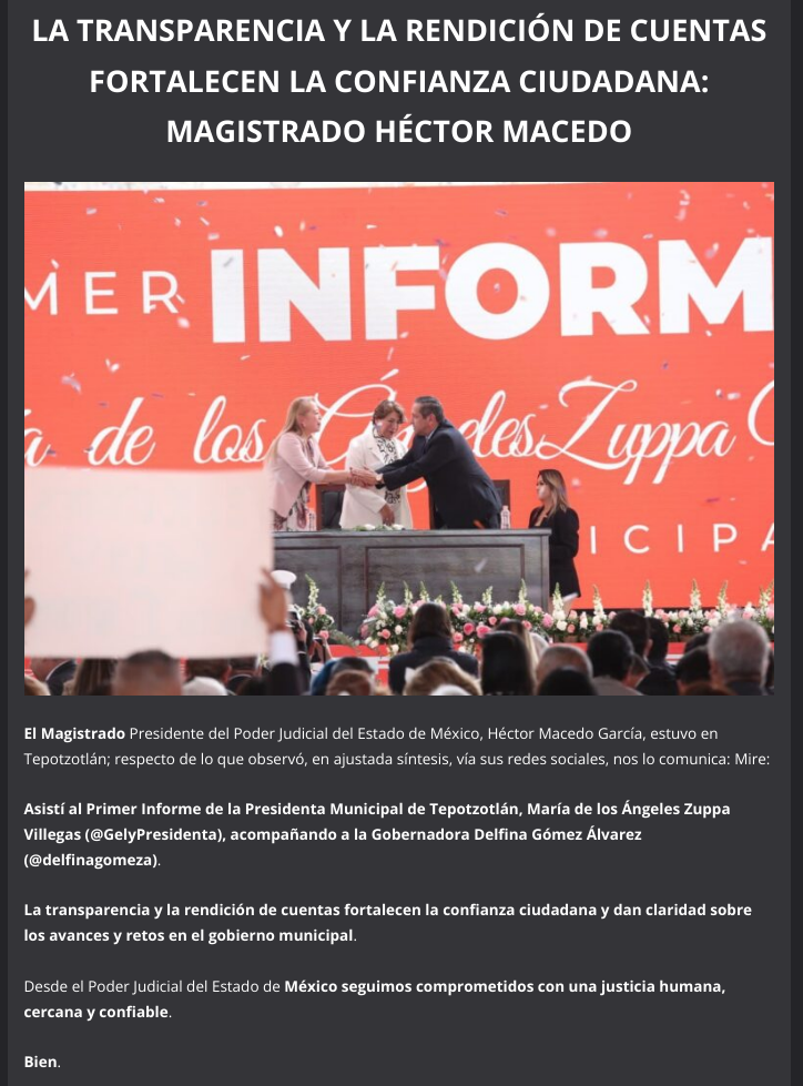 Asistí al Primer Informe de la Presidenta Municipal de Tepotzotlán, María de los Ángeles Zuppa Villegas (@GelyPresidenta), acompañando a la Gobernadora Delfina Gómez Álvarez (@delfinagomeza).